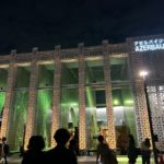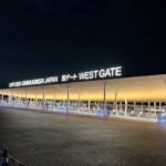 閉館後の西ゲート 光るミャクミャク